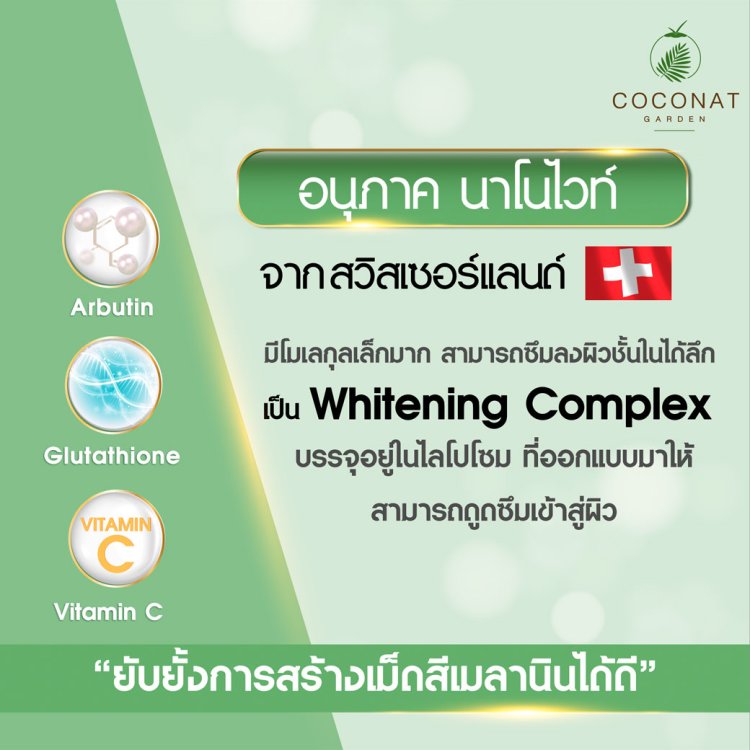 เพิ่ม อนุภาค นาโนไวท์ จาก สวิสเซอร์แลนด์ (เป็นการรวมสารสกัดธรรมชาติ 3 ชนิด) ที่ช่วย ให้ผิวใสขึ้นอย่างเป็นธรรมชาติ ใน 2 สัปดาห์ จนสัมผัสได้ค่ะ