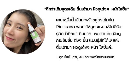 คุณโบตั๋น เจ้าของช่อง PinkMalakul Familyคุณแม่ลูกหนึ่ง เป็นคนไม่ค่อยมีเวลาดูแลตัวเอง นอนน้อย ทำให้ผิวเสื่อมโทรมมาก พอมาใช้ Coconut Serum NanoWhite สังเกตว่าผิวดี ผิวอิ่มน้ำ ขาวใส
