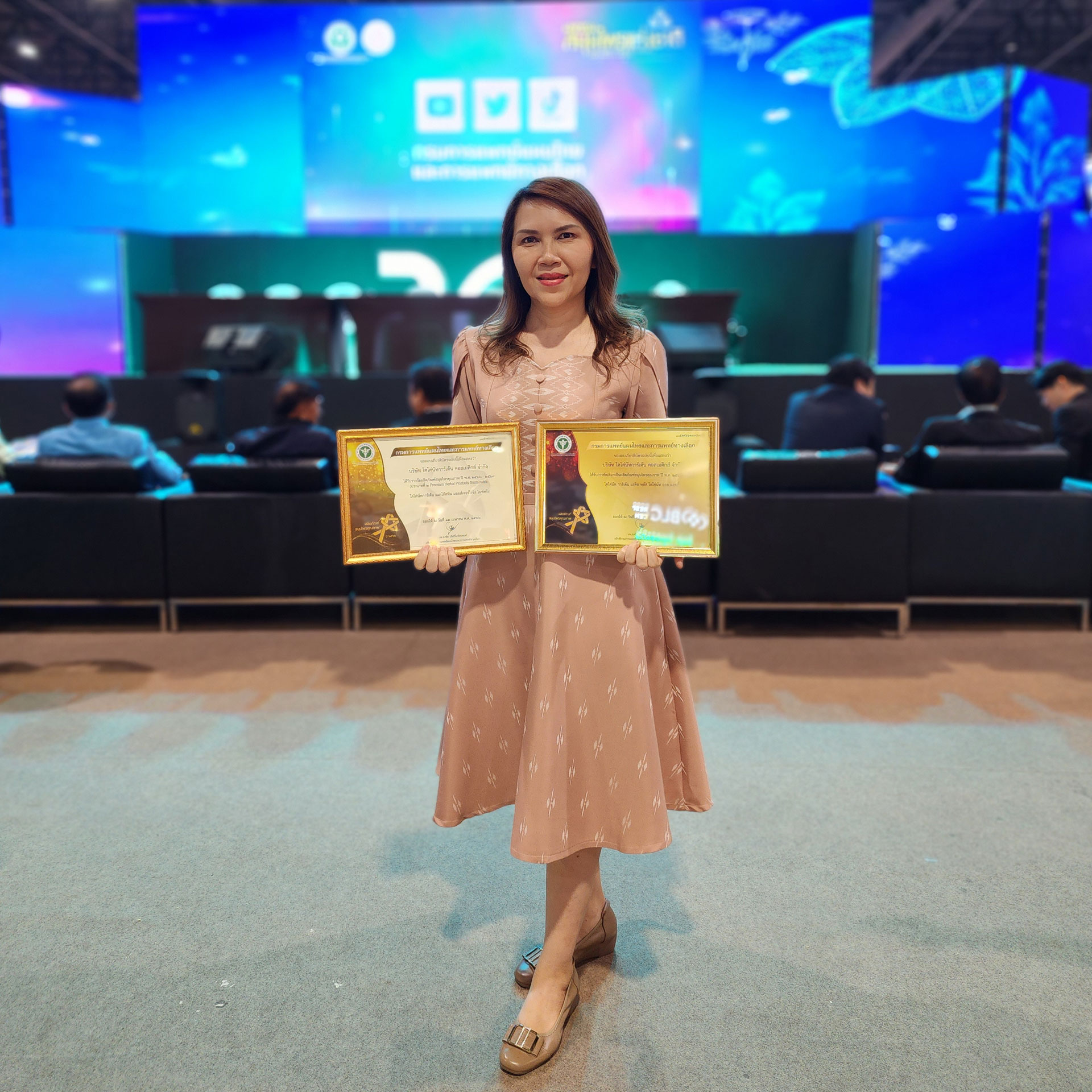 คุณชุติกาญจน์เจ้าของแบรนด์โคโค่นัทการ์เด้น ขึ้นรับ 3 รางวัล ผลิตภัณฑ์สมุนไพรคุณภาพ ปี 2566 (Premium Herbal Products) ในงานมหกรรมสมุนไพรแห่งชาติ ปี 2566 ในวันที่ 30 มิถุนายน 2566 ที่อิมแพ็ค เมืองทองธานี จากท่านอธิบดีกรมการแพทย์แผนไทยและการแพทย์ทางเลือก กระทรวงสาธารณสุข